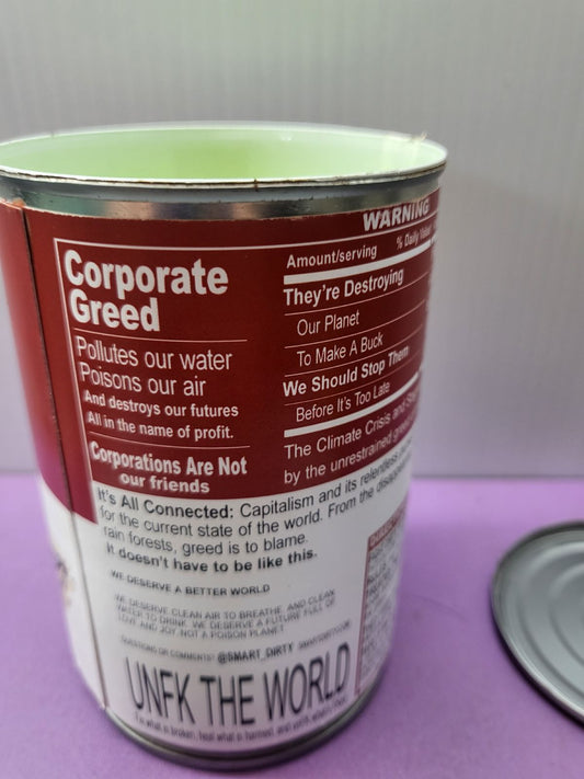 I did these two soup can designs in September of 2023. The first one, Cream of Pollution, was part of a contest. Food (For My Family) was done right after....